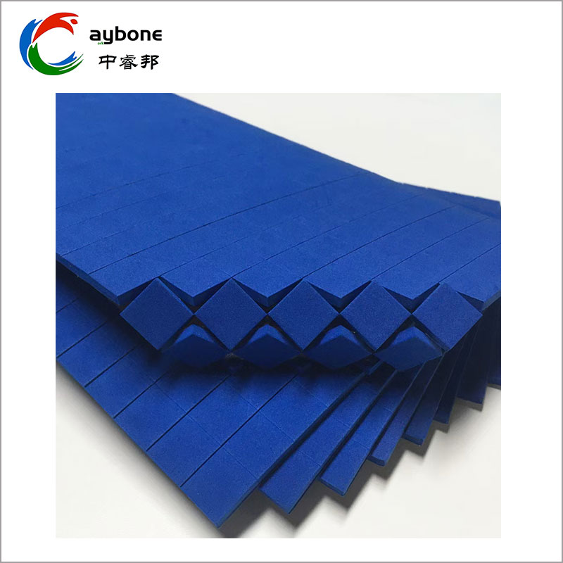 Blauwe Eva rubberen pads met lijmZijn Gefreesd Van Zwart Eva Rubber. De conventionele dikte van Eva Rubber Pad is 2 mm ~ 5 mm. De hardheid van conventionele specificaties is ongeveer 60 graden, en materialen met verschillende hardheden zoals 38 graden, 70 graden en 80 graden zijn beschikbaar. Naast de reguliere dikte en hardheid, kunnen andere diktes, hardheid en afmetingen worden aangepast aan de behoeften van de klant.